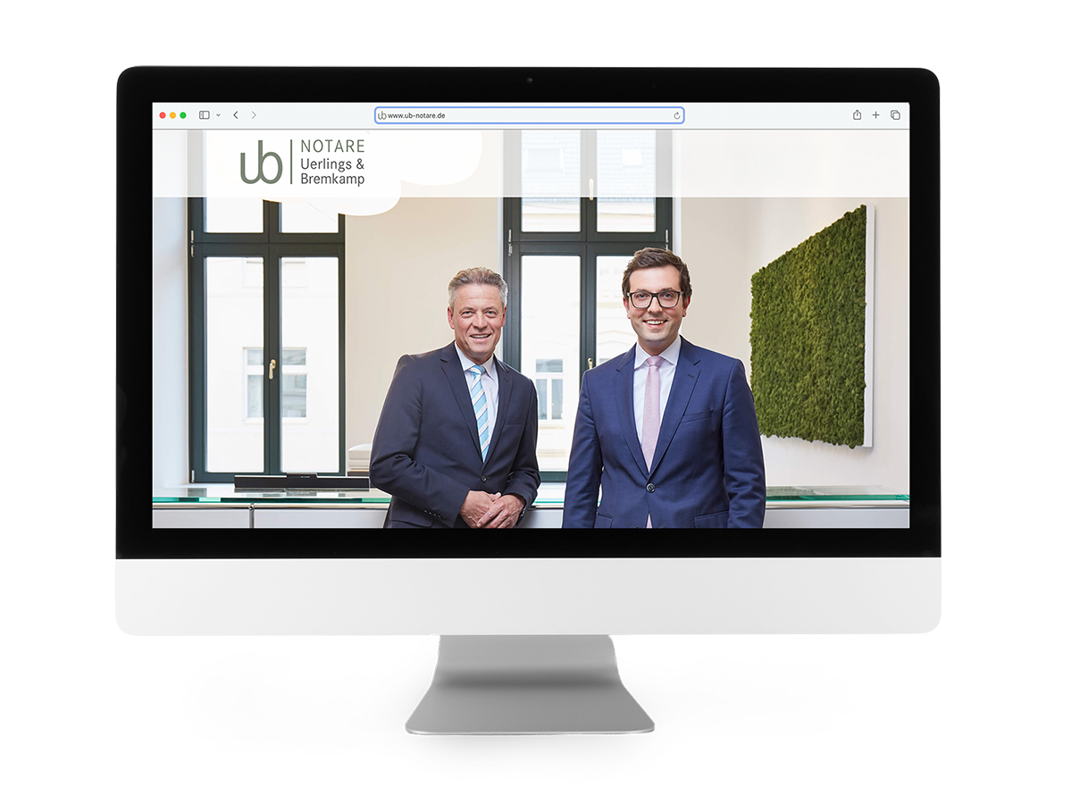 Das Notariat von Michael Uerlings wurde 2018 durch Dr. Till Bremkamp ergänzt. Vom Briefkopf angefangen wurde der Außenauftritt der Kanzlei überarbeitet: Nicht nur die Büroräume in der Bonner Innenstadt wurden renoviert, auch die Onlinepräsenz wurde in Struktur und Nutzerführung zeitgemäß angepasst. Für neue Bilder haben sich UB Notare an uns gewandt. Gemeinsam haben wir die Kommunikationsziele analysiert und eine Bildsprache erarbeitet, die sowohl bestehende als auch neue Mandanten abholt. Als der Bildbedarf klar definiert war, haben wir angefangen zu fotografieren.